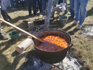 O mare de oameni, de sunet, o scenă unde se cântă muzică populară, iar din toate părţile eşti îmbiat la bulz, pastramă, brânză, must şi mici.